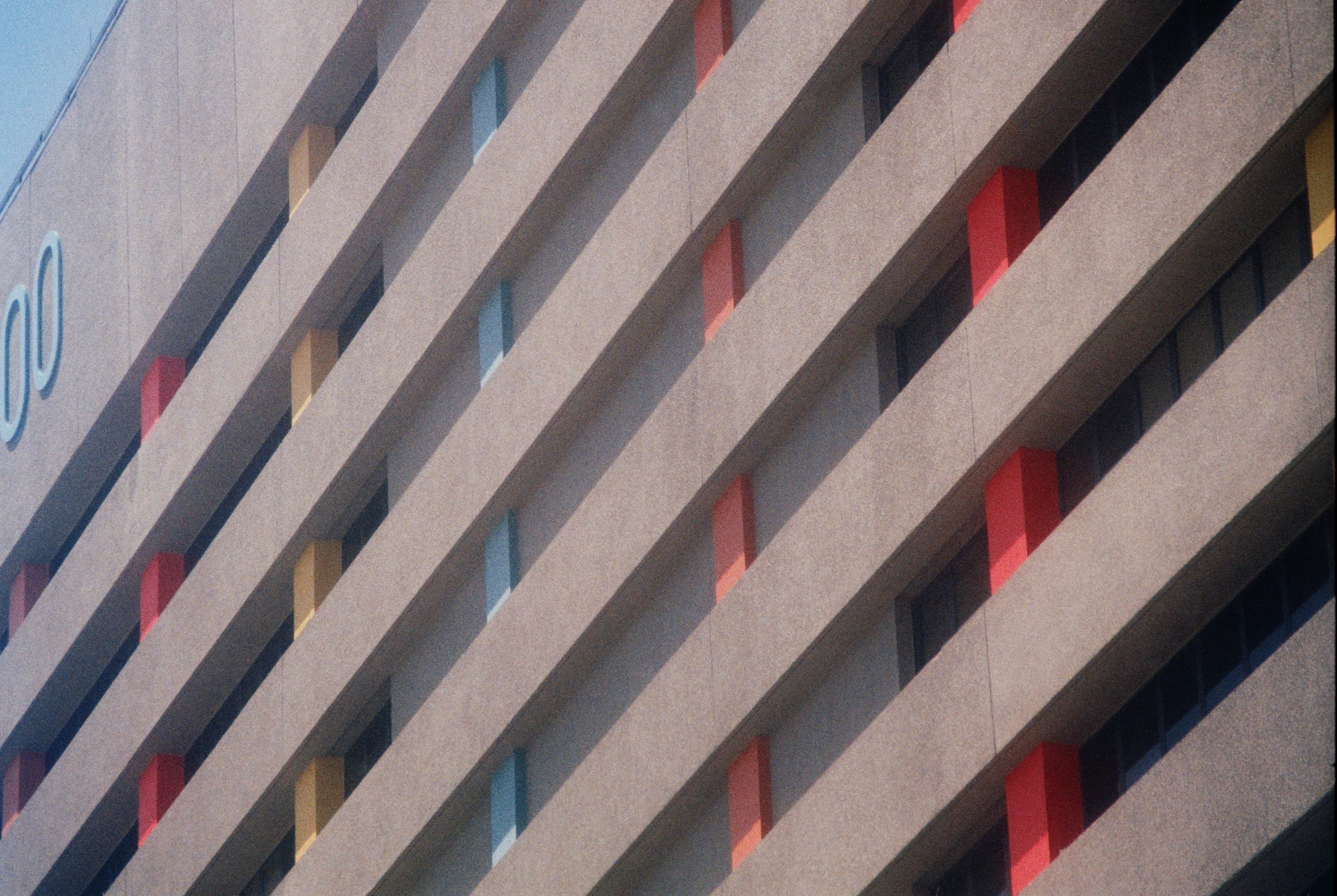 Most the time I enjoy using a wide lens for architecture and finding a 'line' to use as a reference point / guide for the final photograph. In this case, a wide lens is perfect. Much practice.